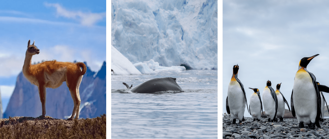 Combining Patagonia and Antarctica feels like visiting two different worlds. In Patagonia, travelers can spot guanacos grazing on the steppe, Andean condors soaring above granite peaks, rheas and foxes in the distance, and maybe even pumas. Then, as they sail south to Antarctica, the scene shifts to vast penguin colonies, curious seals resting on ice floes, whales feeding in rich polar waters, and seabirds like albatrosses. This contrast—land mammals and birds in Patagonia, then marine life and species in Antarctica—creates a powerful sense of diversity and discovery like no other itinerary combination.